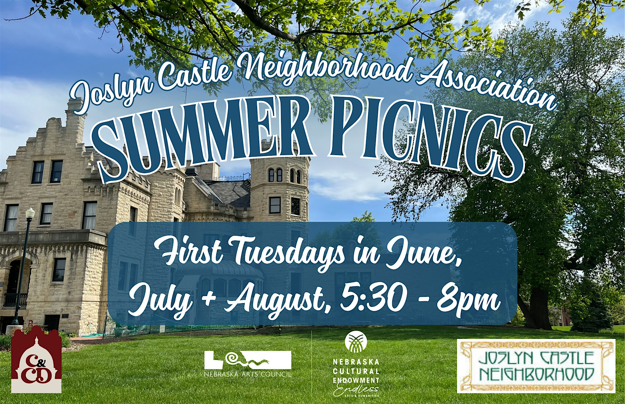 First Tuesdays in July and August from 5:30 to 8pm on the Joslyn Castle Garden grounds. An evening of food, live music & kids programs.
