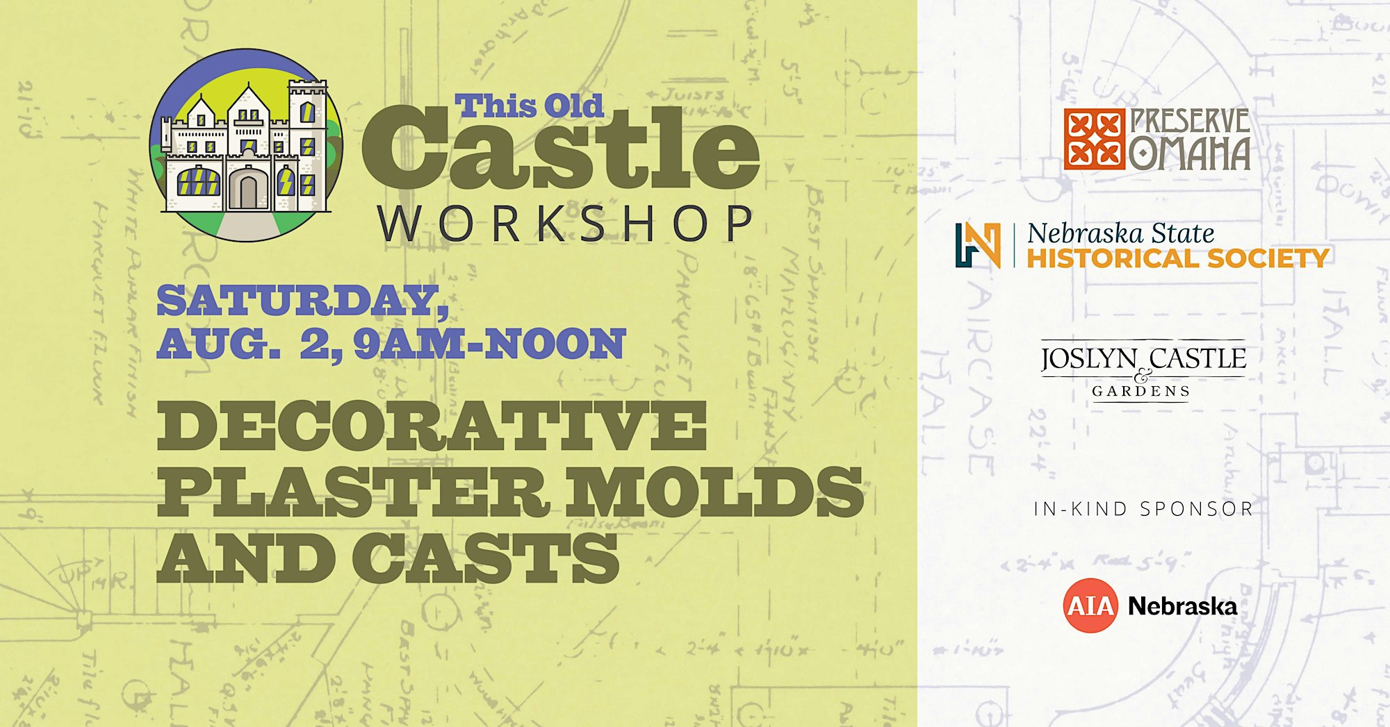 Join us Saturday, August 2nd from 9am-12pm in the Castle basement for a workshop centering around creating, restoring, and repairing decorative plaster in your old home or business!